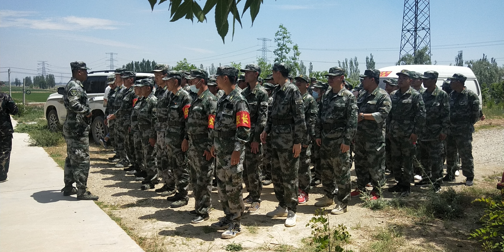 參訓(xùn)人員們蓄勢待發(fā)、拉練前做演練動員。