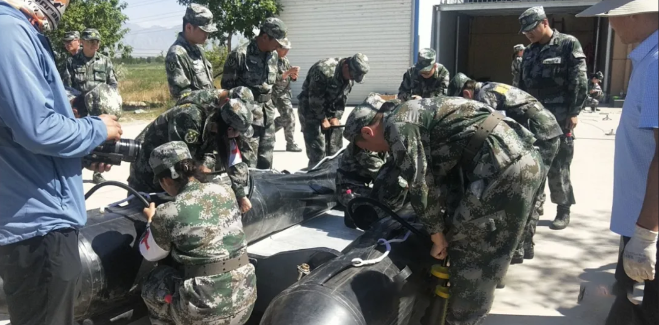 此次防汛抗洪演練活動的組織單位和參訓官兵協助我公司技術人員一起搭建帳篷和裝備的前期準備工作